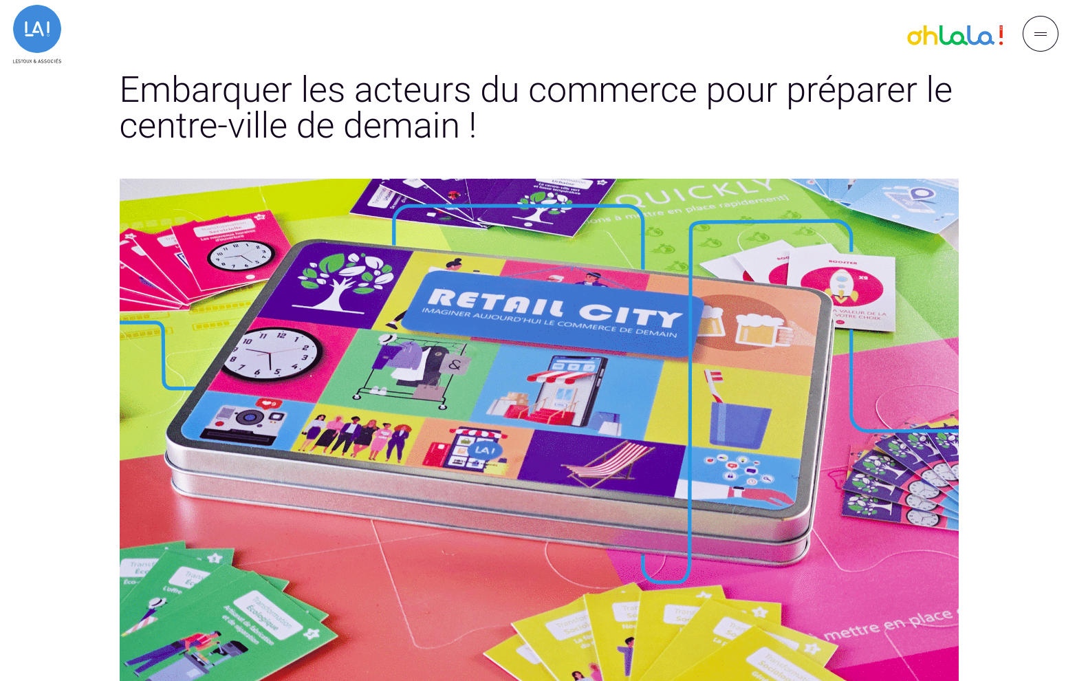 L'agence LA ! a conçu un jeu innovant, nommé Retail City®, pour impliquer les acteurs du centre-ville et les commerçants dans les grandes transformations à venir. L'objectif était de préparer le commerce et le centre-ville de demain face aux multiples évolutions : sociologiques, écologiques, digitales, servicielles et de consommation.