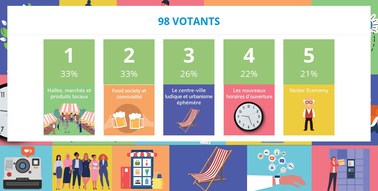 Dès que chaque participant a fait ses choix, l'animateur affiche les résultats du vote en live, sur l’écran géant, en dévoilant les 5 priorités ayant reçu le plus de votes des participants.